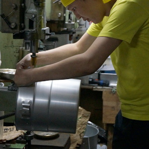 丸いものは、すべてへら絞り加工。細かいものに関しては、プレス加工で。